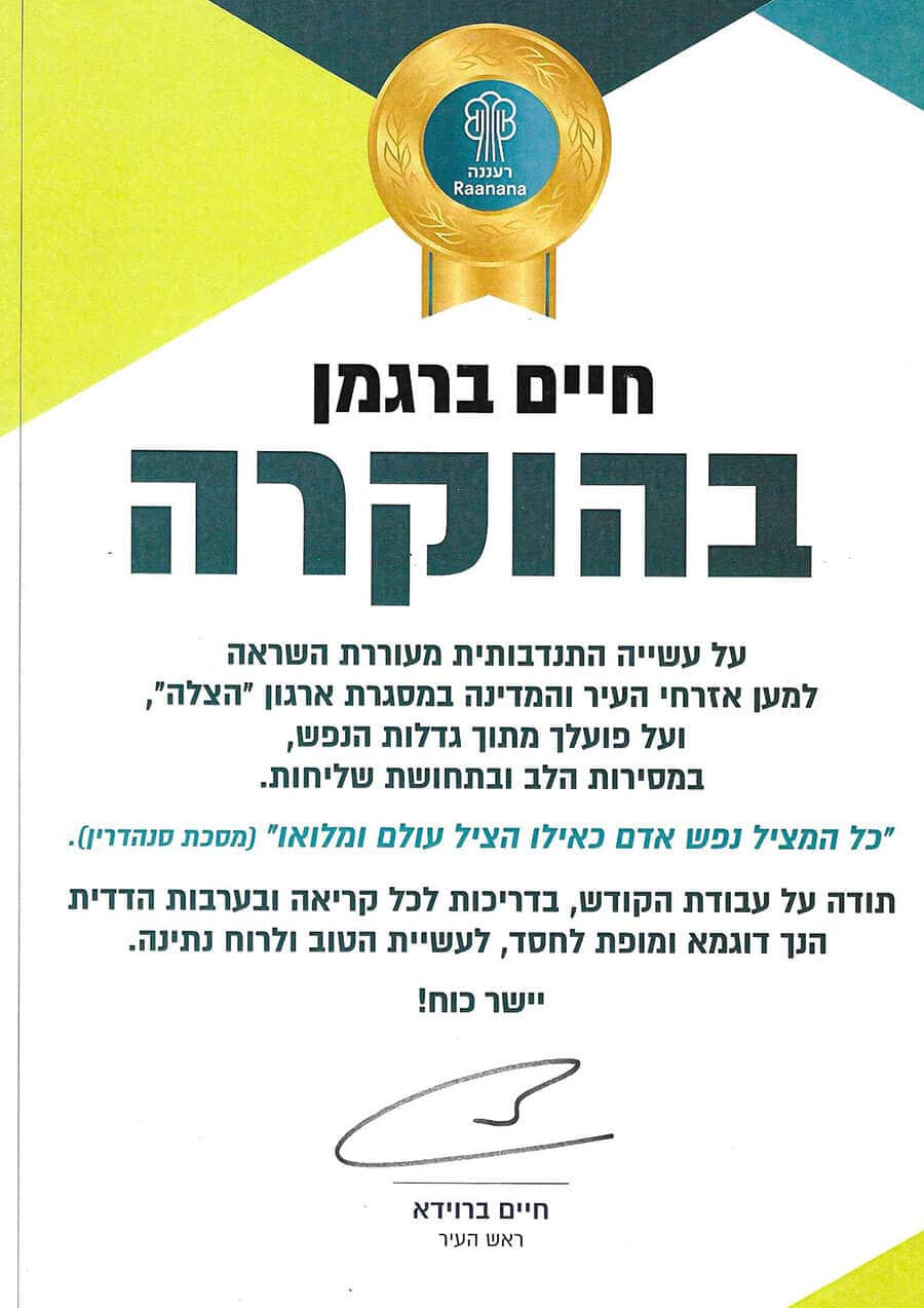 "עמוד השדרה של ארגון הצלה הוא אלפי המתנדבים המדהימים שלנו, שיוצאים במהירות באמצע יום עבודה, שמחה משפחתית או אפילו סתם ארוחת ערב, ופשוט רצים כדי להציל חיים.